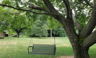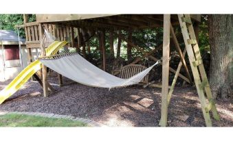 We built a 35x70 pole barn and finished half as additional garage space and the other half as a recreation space. Then we added a 20x40 in-ground heated pool, hot tub, gas grill, shaded picnic area, swings, slide, treehouse, and campfire area. We also have cornhole bag toss for outside. Our Camper is also in the driveway. It is listed separately as "The Pool Barn Camper". Outside spaces are shared with our family and the Camper guests.