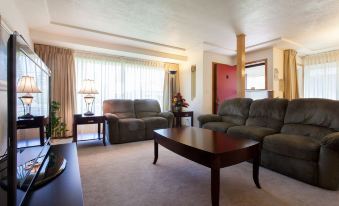 •65" Flat screen HDTV in the living room. The living room has a couch that comfortably seats 3 and a love seat for 2.