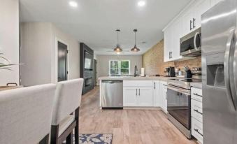 Fully renovated with comfy beds, built-in fireplace, and complete kitchen with lots of seating. Our fenced in backyard space includes a fire pit, string lights and bikes for both adults and kids to enjoy. Right from our backyard jump on the Seaboard Coastline Trail, which is a paved walking/biking/horse riding trail stretching 41 miles throughout Hampton Roads.