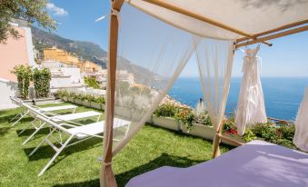 The bedrooms are furnished with modern amenities and air conditioning. Three of the rooms offer stunning views of the Positano sea, providing a picturesque backdrop for guests. The fourth bedroom, designed for ultimate relaxation, includes a jacuzzi and has private access to a shortcut leading to the city. The villa’s layout is designed to maximize comfort and elegance, with gardens and terraces that provide lounge areas to enjoy the breathtaking views.