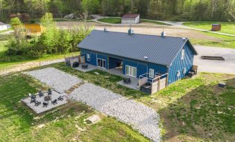 Please note that this structure is a "First of Its Kind" Duplex Barndominium. This listing pertains SOLELY to the left side of the structure. Indulge in relaxation with the luxury of your own private hot tub and outdoor shower. Additionally, a shared breezeway awaits, featuring outdoor games for some friendly competition. Relaxing by a cozy fire pit sound fun? This inviting space offers the perfect opportunity to connect with fellow travelers and make new acquaintances, as this space is also shared. Firewood? We encourage you to enhance your experience by bringing your own or purchasing some locally.