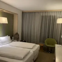 Наша ясная просьба о двух односпальных кроватях была проигнорирована. Нам дали кровать размера queen-size, затем переместили — снова на queen-size. Нам дали одеяло, чтобы мы могли «обойтись». На следующий день ничего не исправили. После звонка на ресепшен и ожидания в 40 минут пришел неговорящий по-английски уборщик, сбитый с толку, и просто бросил на кровать еще одно одеяло. Вот и все.