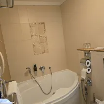 Номер был хорошо оборудован, с достаточным количеством полотенец и туалетной бумаги. Напор воды был сильным, а слив работал исправно. Однако в номере чувствовался лёгкий запах сырости. Было бы неплохо, если бы гостям предоставили осушитель или очиститель воздуха. Рядом есть бары, работающие до поздней ночи, но двойные окна блокируют большую часть шума. Для гостей, не слишком чувствительных к звуку, это должно быть приемлемо.