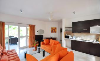 Просторные апартаменты обставлены деревянной мебелью и оснащены телевизором с плоским экраном и кондиционером. Во всех из них имеется балкон или веранда с видом на горы и сад. В собственной ванной комнате установлен душ и предоставляются фен и бесплатные туалетно-косметические принадлежности.