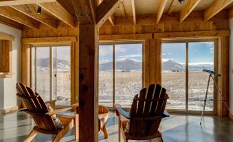 Our retreat also offers breathtaking views of the surrounding mountains from every angle, thanks to its 360-degree scenery and expansive panoramic deck. Situated on 20 acres of pristine wilderness, you'll find yourself immersed in the natural beauty of Montana, with easy access to nearby attractions like Yellowstone National Park, Bozeman, and Bridger Bowl Ski area, all just a short 45-minute drive away.