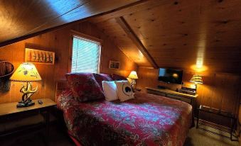 At The Bear Den you can enjoy the ambiance of a Cozy Cabin with all the amenities of home…The Cabin provides comfortable accommodations for up to 5 people; With 2 bedrooms and 2 full bathrooms all on one level. The master bedroom with a king size bed with en suite bathroom. The second bedroom has 1 Full/Double bed and 1 Twin bed. All linens and bath towels are provided for your convenience and a new metal pier was just installed this year.