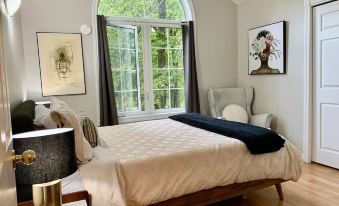 The entire guest suite has 3 bedrooms and 2 bathrooms exclusive to the guests of 6 people and 3 children under 10 years old at max. Every room has bright rooms and looking to the private, surrounding garden. Rooms have blankets, comforters and either queen or king beds. 3 bedrooms are sharing the large, bright open concept living and kitchen area. From the living room, there are 2 accesses to the raised patio overlooking to the spacious garden.