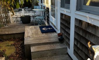 Perfect Provincetown freestanding cozy cottage located on a charming quiet street mere blocks away from all the lively action and waterfront fun of Commercial St. Blocks from the beach, the Gallery District and the Fine Arts Work Center. Enjoy all Provincetown has to offer with this central location on the East End. Drink your coffee or sip your wine on your private deck as you take in the beautiful tree lined street during sunset. Eat in, creating a stellar meal in your fully equipped kitchen! Binge on your favourite TV shows, or take a short stroll to memorable restaurants like The Mews nearby. Luxuriate after a day on the beach or in town at the galleries, shops and bars in your artists cottage complete with gas stove, dishwasher, smart TV, wifi, brand new furnishings, original artwork, washer/dryer and posh bedding. Cottage is full of natural sunlight and is designed for your maximum comfort and ease. Live like a local in style.About pets:No pets allowed.About checkOut:Check out before 10:30 AM.About children:Children allowed: ages 0-17.About customRules:no commercial filming or photography.No events, parties, gatherings. Quiet hours after 11pm..About checkIn:Check in after 4:00 PM.About smoking:Smoking is not permitted.About minBookingAge:Minimum age to rent: 25.About events:No events allowed.