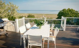 Discover your perfect Provincetown escape in this spacious beachfront home with panoramic Cape Cod Bay views. Designed for families and groups, the house features four king bedrooms—each with its own en suite bath and blackout shades for restful sleep.