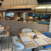 Новое здание открылось не так давно, и запах в номере еще не выветрился полностью. Время завтрака немного хаотичное. Не хватает мест, и блюда не пополняются вовремя.