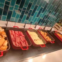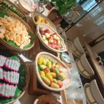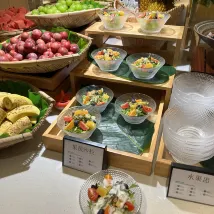 «Как любитель фруктов, я был действительно удивлен фруктовой станцией на завтраке! Не только арбуз и дыня, но и сезонные персики, манго и питайя, которые были нарезаны крупными и свежими кусочками и были сочными. Также есть много видов йогурта, и очень приятно делать свой собственный фруктовый салат. Фрукты быстро пополняются, так что вам не нужно беспокоиться о том, что вы опоздаете и у вас закончится еда, что очень предусмотрительно!»