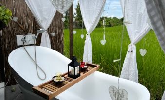 ที่พักกลางธรรมชาติทุ่งนา ห้องพักสะอาด พนักงานให้บริการได้ไม่บกพร่อง แต่ห้องที่พัก เครื่องทำน้ำอุ่นสำหรับอ่างน้ำนอกระเบียงใช้งานไม่ได้ อาหารเช้าดี มาเป็นชุดขันโตกเสริมถึงหน้าห้อง