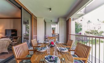 Our luxury condo (F101 at the Mauna Lani Terrace) is walking distance (5 min) from the new Auberge Mauna Lani Resort, with nearby restaurants, tennis, and golf facilities. It’s a short walk (10 min) to one of the Islands best beaches with snorkeling, paddle boarding, and scuba diving. Our unit is located close to the first hole of the world class north course of the Mauna Lani Golf courses and is walking distance from the club house. It is both private and luxurious, but close to all amenities including shopping and grocery store. Dine out at the waterfront Canoe House, or eat in. There is a private BBQ area, and private pool. The resort was built around the unique and outrageously beautiful Mauna Lani Bay environment. This condo offers the best of both worlds: classic Hawaii, and world class resort. The condo itself has a spacious open floor plan with outdoor dining on the lanai. This is a one of a kind location and will give you an unforgettable vacation experience.