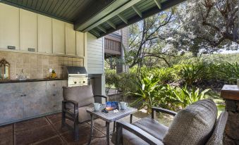 Unit 205 is a 2-story upscale retreat with no one upstairs or down. It is extremely quiet and restful with a private mountain view. This unit offers a downstairs primary bedroom suite and two upstairs bedrooms. Elegantly appointed for comfortable extended stay and spacious enough for entertaining. Enjoy preparing a meal in the outdoor kitchen on your private lanai on the Viking gas barbeque - the perfect place to grill a Parker Ranch steak or fresh island fish. Parking in the attached one car garage is included.