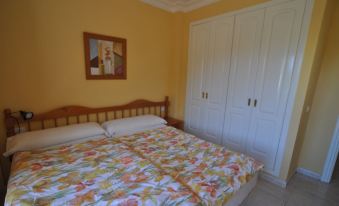 Bedroom with large double bed (2 mattresses) and built-in wardrobe