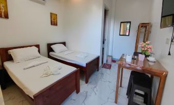 Понравился отель. Очень хорошее месторасположение. В номере есть всё.кондиционер, душ с горячей водой, стаканы, стол, стулья. В номере чистенько. Свежее постельное бельё.Для переночевать отличный вариант. Бесплатный транферт в аэропорт. Думаю если связаться с отелем они вас бесплатно и встретят. Приятный оизывчивый персонал. Ещё будете искать отель на такси или трицикле показывайте фото которое я выложил. По названию в трип, нас увезли в другую сторону.
