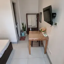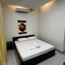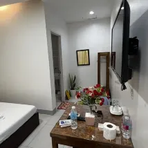 Понравился отель. Очень хорошее месторасположение. В номере есть всё.кондиционер, душ с горячей водой, стаканы, стол, стулья. В номере чистенько. Свежее постельное бельё.Для переночевать отличный вариант. Бесплатный транферт в аэропорт. Думаю если связаться с отелем они вас бесплатно и встретят. Приятный оизывчивый персонал. Ещё будете искать отель на такси или трицикле показывайте фото которое я выложил. По названию в трип, нас увезли в другую сторону.