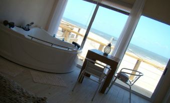 A charming boutique hotel with 9 rooms, overlooking the sea and sand dunes. All rooms have terraces with comfortable lounge chairs. Beach chairs and umbrellas are available for guests to use on the beach. Breakfast is excellent, with yogurt, fruit salad, granola, toast, and eggs if you wish. The staff is friendly and helpful. Highly recommended for a relaxing vacation at the beach.