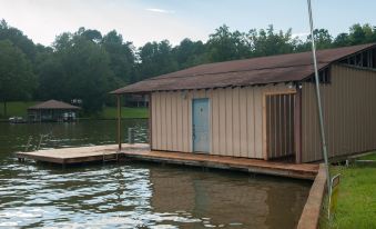 Easy walk to the end of the private dock, fish or swim right off the dock, a great view of the lake. Double boat house, plenty of room to put your water toys. You can launch your boat right in the cove. Outside wood pit overlooking lake.