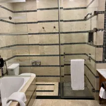 Номер с ванной и душем. Приезжал сюда отдохнуть в одиночку, всё прилично. Завтраки можно улучшить, хотя разнообразие, конечно, не самое лучшее. Я вообще не могу есть, жареная рыба. Нам лемак, нам керас х бераса ванги лемак… Очень понравились омлеты и лепёшки роти-чанаи. Завтрак немного разочаровал за такую цену. Тем не менее, хороший отель для спокойного отдыха!