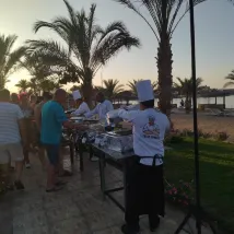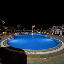 Отдыхали с мужем в конце ноября-начале декабря 2023 г. и ни на секунду не пожалели, выбрав именно этот отель! 1. Собственный риф (нам показалась, что не такой красочный как в Шарме, но тоже достаточно достойный для этой части побережья, рыб множество), удобный заход в море, отдельно есть более или менее мелководная часть. 2. Питание – на 10 баллов из 10. Алкоголь не разбавленный. 3. Отдыхающие – возрастная категория 45+ (соответственно, никаких детей и детской анимации, ни криков, ни визга, красота!!), в подавляющем большинстве – немцы, русских единицы (что порадовало, отдохнуть от соотечественников, оказывается, тоже полезно), общение с персоналом – немецкий или английский (самый базовый уровень, не особо им владеют). 4. Территория – чисто, всё ухожено, много зелени. 5. Местоположение – за пределами г. Сафага, гулять поблизости негде. 6. Развлечения – на пляже всё стандартно: йога, дартс, волейбол и т.п.; в 21.00 – шоу от аниматоров (но т.к. контингент европейцы-пенсионеры, то и юмор для нас был не совсем понятен, музыка тоже, по ощущениям в 22-23.00 всё заканчивалось, никаких ночных дискотек). Есть тренажерный зал (стандартный набор), мы ежедневно ходили. 7. В виду удаленности отеля гид от Пегас Туристик был с нами на связи онлайн, лично его в глаза не видели. Цены, которые нам указал по нашему запросу экскурсий – «космос» (270 долларов за двоих в Луксор), на пляже ходят ребята с предложениями экскурсий (не берите, никаких гарантий и дорого). Мы в итоге заказали самостоятельно на сайте Спутник sputnik8.com, вышло 120 долларов за двоих с учетом трансфера из/до отеля, обедом в Луксоре, и всеми основными его достопримечательностями (экскурсия называется «Золотой Луксор с Долиной царей). Дополнительно заплатили 20 долларов за двоих за экскурсию на Банановый остров, не пожалели! Перекусили фруктами на лодочке, пока плыли на остров, там увидели как растут бананы, попробовали сок из сахарного тростника, купили много отличного манго. 8. Сезон - застали 3 дня с зеленым флагом (море спокойное), далее, примерно с 1 декабря (плюсминус), начинается сезон ветров, 2 дня был шторм и красный флаг (не купались), в последующие дни - флаг желтый, но волны сильные, далеко заплавать не рисковали. Так что лично для себя определили период отдыха - с 15 по 25 ноября (идеально!). 8. Вернемся ли снова? Обязательно!!!