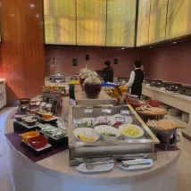 В представительском лаундже царит комфортная обстановка. Существует множество разновидностей завтрака. Обслуживающий персонал полон энтузиазма. Они помогли нам сварить кофе и угостили лапшой и вонтонами. Днем также был подан изысканный дневной чай. Когда мы уходили, женщина вручила нам небольшой подарок. Это был очень удовлетворительный опыт пребывания.