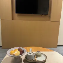 You are offered a sweet soup or cakes in the evening and there is a real tea service and fruits in the room.