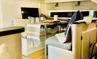 A truly unique experience, Enjoy the stunning view of the bay and nature staying on this 40 ft yacht moored at a fishing Marina. Sleeps 8 snuggly with 2 bedrooms and 2 bathrooms. Newly renovated with full kitchen and all the amenities. Small beach with grill, steps away from a tiki bar for cocktails and full menu including seafood. Mins drive from historical Annapolis and mfancy marinas and restaurants nearby. Great for families, a romance trip, fishing charters, bike rental, boat life, and zenAbout pets:Pets allowed: dogs (limit 1 total).About checkOut:Check out before 11:00 AM.About children:Children allowed: ages 0-17.About checkIn:Check in after 3:00 PM.About smoking:Smoking is not permitted.About minBookingAge:Minimum age to rent: 18.About events:No events allowed.