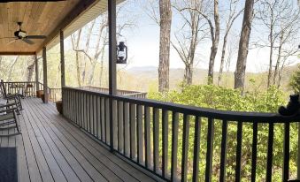 What a wonderful quiet location. The views from the porches are beautiful. The outdoor fireplace is a plus on those cool nights.