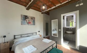 The three bedrooms are all equipped with smart TVs and private bathrooms, ensuring comfort and privacy for all residents. Each bedroom is tastefully furnished, combining traditional Tuscan elements with modern comforts. The private bathrooms are elegant and spacious, with high-quality finishes and Jacuzzi taps.
