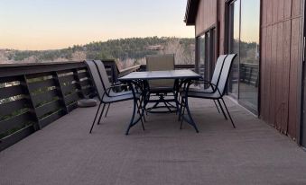 4 bedroom, three level home with 10 sliding glass doors that open up to a deck which outlooks the black hills and canyon lake. Two rooms have a king bed and the other 2 have full size bunk beds (top and bottom are both full size mattresses). Pots, pans, plates, and silverware are clean and readily available in the kitchen. Towels, wash clothes, soap, shampoo and conditioner are readily available in the bathrooms. Sofas and carpets get steam cleaned every 4 months and the home is professionally cleaned before each party arrives. The Hot tub is located on the lower deck and has a great view as well.About pets:Pets allowed: dogs and cats (limit 1 total).About checkOut:Check out before 11:00 AM.About children:Children allowed: ages 0-17.About checkIn:Check in after 5:00 PM.About smoking:Smoking is not permitted.About minBookingAge:Minimum age to rent: 18.About events:No events allowed.