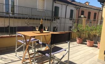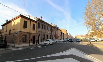 Independent and spacious house in the center of Ravenna. Ideal for families and couples. It is made up of: on the first floor two bedrooms, one double in 1950s style and one with two single beds, a bathroom with shower, a large terrace; on the ground floor: main entrance in via di Roma with lounge and TV, large well-equipped kitchen, a desk area, bathroom with shower, laundry room and second entrance in via Zagarelli alle Mura 82. Located in front of the Loggetta Lombardesca headquarters of the MAR, Ravenna art museum, with parking. Next to Porta Nuova. It allows you to visit on foot the main cultural itinerary of the city: the mosaics (San Vitale and Mausoleum of Galla Placidia, S. Apollinare Nuovo, Baptistery), the church of San Francesco, Dante's tomb, the Classense library etc.