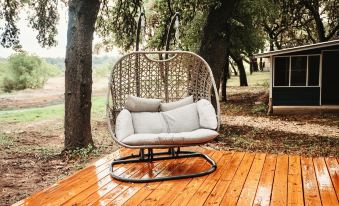Our outdoor area at the Nueces River House is a natural extension of the home, offering a variety of experiences for relaxation and adventure. The expansive 600 square foot deck provides the perfect vantage point to admire the stunning Texas sunsets. It's also an ideal space for outdoor dining or evening gatherings around the fire pit. And even the back porch has an outdoor flatscreen TV and mini fridge!
