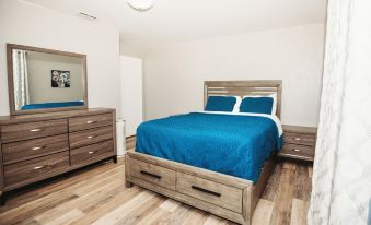 The bedrooms are equipped with essential storage facilities - closets and dressers - to make your stay convenient and organized. Extra pillows and blankets are available to ensure everyone's comfort, alongside room-darkening shades for a restful night's sleep.
