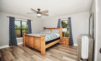 1. Master Bedroom: Retreat to our expansive master suite featuring a luxurious king-size bed. This spacious room is a sanctuary of relaxation, complete with comfortable bedding and serene decor that mirrors the natural surroundings. Large windows offer picturesque views, ensuring a tranquil awakening to the beauty of the Texas Hill Country.