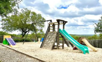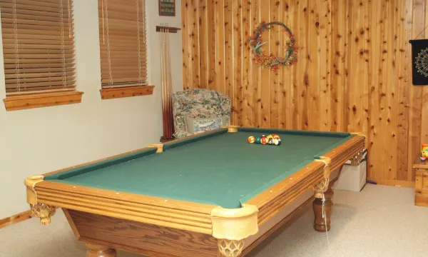 It has all you expect from a modern establishment with an elegant rustic decor. The indoor and outdoor wood burning fireplaces adds to the ambience and provide the needed warmth on a cool hill country night. The game room upstairs has a pool table, big screen TV and ample toys to keep the kiddos entertained. The house is furnished with a full size crib, highchair as well as baby gates for the stairs. The fenced in back yard has a playset and sand box.