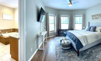PRIMARY: King bed, workspace, en-suite bath, golf course views, smart TV