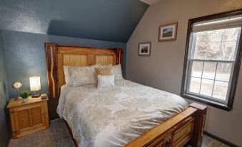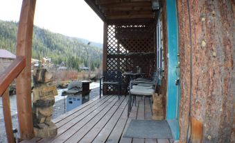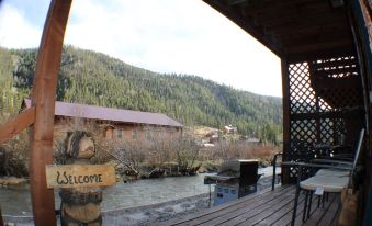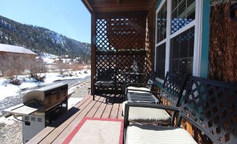 Enjoy the fresh mountain air on the porch while fishing. Explore hiking, biking, and utv trails minutes from the cabin. Mallette Park (1/4 mile away) offers great entertainment for youngsters in the summer time with a pump track, disc golf course, skate park, recreational equipment, and picnic tables for people of all ages to enjoy time together and the great outdoors. In the winter time, the town trolley will pick your entire group up from the cabin and drop them at the Ski Area, free-of-charge. The cabin sleeps 6. Kitchen is completely stocked with cookery and you'll have your own gas grill outside to use as well. Balcony bedroom offers a king bed. Horseback rides and Cowboy Dinners can be booked. Whether beating the heat of the Summer or skiing the slopes of the Winter, this property checks off all the boxes. Local owner is host and we are happy to answer your questions about anything Red River.About pets:Pets allowed: dogs less than 20 lbs per pet (limit one pet total).About checkOut:Check out before 10:00 AM.About children:Children allowed: ages 0-17.About checkIn:Check in after 3:00 PM.About smoking:Smoking is not permitted.About minBookingAge:Minimum age to rent: 21.About events:No events allowed.