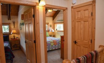 This 2 story cabin with wood siding is a mountain vacation dream come true! The home features a riverfront location, 3 bedrooms, one on the first floor and two on the second floor, leaving the downstairs area boasting a beautiful open floor plan! All 3 bedrooms have Queen size beds in them and there is a full-size futon in the living room. The upstairs features plush carpet and the downstairs area features beautiful light wood floors. There are two full baths to accommodate all the guests that choose this beautiful home for their mountain getaway.