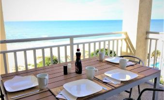 Spectacular view of the Gulf of Mexico from this 3 bedroom, 3 bath condo. Two sliding glass doors allow a panoramic view of the water. Seriously, the cable guy, who spends his day in units up and down the beach, walked into our unit and said, “Wow!”