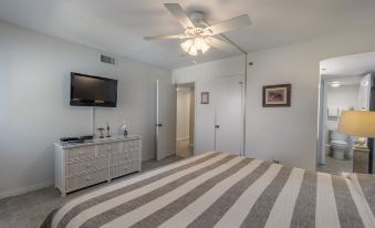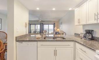 This fun property starts in the bright and open kitchen, with newer appliances and fully prepared for your visit with all the essentials to make your stay enjoyable. There is also a dining area, just outside the kitchen, perfect for playing games, or enjoying a meal. Bar seating and kitchen table provide plenty of eating room for you and your guests. The living room has two large leather couches, television and access to the incredible private balcony which offers some of the best ocean views available. Here is the perfect spot to begin and end your day while taking in the fresh Florida air. The lovely master bedroom is attractively furnished with king sized bed, television and access to the master bath. The spacious second guestroom two twin beds and television as well.