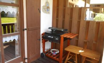 From the living room you reach the terrace with a cozy and rustic seating area. A gas grill is for nice barbecues is also available. Directly in front of the house is a parking lot.