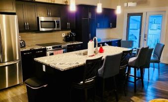 Make yourself at home in this 3 bedroom 1.5 bathroom in Harbour Landing. Everything you need for a short or long term stay. The kitchen is fully stocked with all you need. On the main floor is a half bath with access to porch for the summer and and indoor fireplace in the cooler months. High speed Wi-Fi and TV, dedicated work space on main level. Upstairs you will find 3 bedrooms two of which have Queen sized beds and one has a double bed.