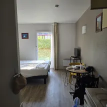 Logement assez moyen qui a besoin d etre refait. De plus manque de vaisselle et ustensiles de cuisine pour faire un repas sur place. C'est pour cette raison que l'on choisit ce genre d hébergement plutôt qu'un hôtel Donc ne correspondait pas à notre attente. Point positif très calme.