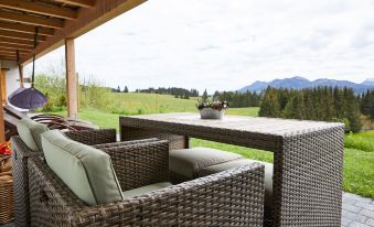 A special highlight in the Elchegg Chalet from December 2019 is our infrared sauna on the terrace with a view of the panoramic landscape.