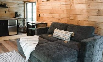 bed in the loft, sleeper sofa from Lovesac, a full bath, kitchenette, a front deck over looking the beautiful valley with lots of wildlife. The cabin has internet, TV, fridge, and also an outside fire pit grill.