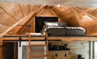 Bed room is open loft with full bed, additional Queen sofa available downstairs.