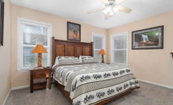 Escape to Pine Cone Cottage which is great for relaxation and entertainment for the whole family. Nestled in a tranquil setting, this 4-bedroom, 3-bathroom cabin boasts a private hot tub and outdoor patio & grill. The cabin features 2 multi-game arcade games, providing hours of entertainment for kids and adults alike. 2 ZERO ENTRY SWIMMING POOLS and KIDS SPLASH PAD, Club house with pool table and weight room are just around the corner. Come enjoy life to the fullest in this idyllic getaway.About pets:No pets allowed.About checkOut:Check out before 10:00 AM.About children:Children allowed: ages 0-17.About checkIn:Check in after 4:00 PM.About smoking:Smoking allowed: in designated areas.About minBookingAge:Minimum age to rent: 18.About events:No events allowed.