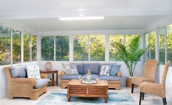 Come back and cook breakfast in the fully equipped kitchen stocked with spices, pots and pans and plenty of dinnerware. Enjoy at the large mahogany dining room table or out back in your private yard.