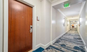The room looked clean and nice at first glance but as we settled in we realized it is in need of deep cleaning. There were stains on the couch/sofa bed, throw pillows and the sofa bed itself was unstable and didn’t set up properly. As we were setting it up we realized we didn’t have any sheets for it (there were only itchy blankets and comforters available). When we called to ask for sheets and to inform them about the sofa bed, the gentleman was very defensive saying “no sofa beds are comfortable” and since we bought the least expensive room (keep in mind we booked the “luxury king suite”) that we shouldn’t expect anything else but that he’d be glad to upgrade us at our expense. The room wasn’t very neat. Lamp shades were tilted, shelf items were pushed to the side and not placed very neat. All in all it was terrible. Since this property shares the property with Marriott, it seems nice at first but it’s definitely not up to Marriott standards for hospitality, cleanliness or comfort. Spend the extra $$$$ per night to get what you’re expecting.